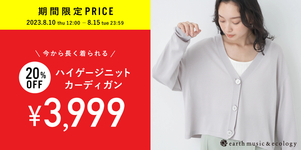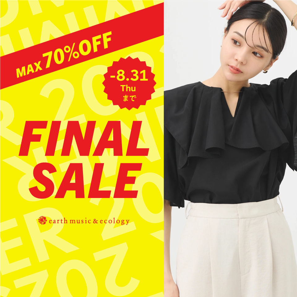 2023-08-10 \FINAL SALE/MAX70%OFF!お買い逃がしありませんか? おトクにGETできるラストチャンス!お見逃しなく! earth music&ecology からのお知らせ \8.31 thuまで!/ FINAL SALE MAX70%OFF★ いよいよFINAL SALE! まだまだこれから使えるアイテムを お得にGETできる最後のチャンス☆ ※店舗により在庫状況が異なります。 SALEはこちら \期間限定価格/ 人気のカーディガンがおトク◎ 大人気カーディガンが 今だけSPECIAL PRICE★ ハイゲージの編地が上品♪ 今の時期から秋まで使える万能カーディガン! 使いやすいカラーの4色展開です◎ アイテムはこちら PICK UP! \本日23:59まで!/ PRE ORDER CAMPAIGN 新作予約で10%OFF♪ 詳しくはこちら 受注受付中♪ 『らんま1/2』コラボアイテム! 詳しくはこちら 映画『ハリー・ポッター』との 初のコラボ! 詳しくはこちら 新作アイテム 続々入荷中! 詳しくはこちら 前回大人気だった スカートの新作が登場! 詳しくはこちら ポイントカード交換に関する重要なお知らせ ※このメールは、送信専用メールアドレスから配信しており、 ご返信いただいてもお応えできませんのでご了承ください。 メールマガジンの配信停止はこちら STRIPE INTERNATIONAL INC. (c) All Rights Reserved.