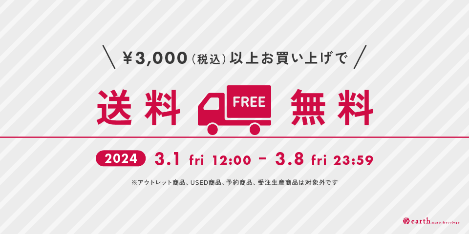 2024-03-08 \本日23:59まで!/3,000円以上お買い上げで送料無料★ オンラインストアでのお買い物をお楽しみください★ earth music&ecology からのお知らせ \お急ぎください/ 本日3/8(金)23:59まで! 税込¥3,000以上ご購入で オンラインストア送料無料! ※アウトレット商品、USED商品、予約商品、受注生産商品は対象外です。 ※新品商品の購入時に限り、同梱するアウトレット商品、USED商品も送料無料となります。 ※2024/3/8(金)23:59までに決済を完了させてください。 オンラインストアはこちら \注目新作アイテム/ 春めきSKIRT \季節を楽しむ/ 春めきSKIRT 春だからフェミニンさをプラスしてくれる スカートが欲しい...♪ フェミニンなデザインから カジュアルに着られるデニムまで 幅広くご用意しました♪ 詳しくはこちら \SPECIAL PRICE/ 今から長く着られるアイテムがお得! ¥1,799税込 ¥2,999税込 ¥3,749税込 他のアイテムはこちら ★PICK UP★ <earth music&ecology Japan Label> 『初音ミク&鏡音リン・レン』 受注受付中! 詳しくはこちら <SPECIAL EDITION> きちんと見えが叶うブラウスやカーデが 2,000円以下のお手頃プライスで登場! 詳しくはこちら ポイントカード交換に関する重要なお知らせ ※このメールは、送信専用メールアドレスから配信しており、 ご返信いただいてもお応えできませんのでご了承ください。 メールマガジンの配信停止はこちら STRIPE INTERNATIONAL INC. (c) All Rights Reserved.