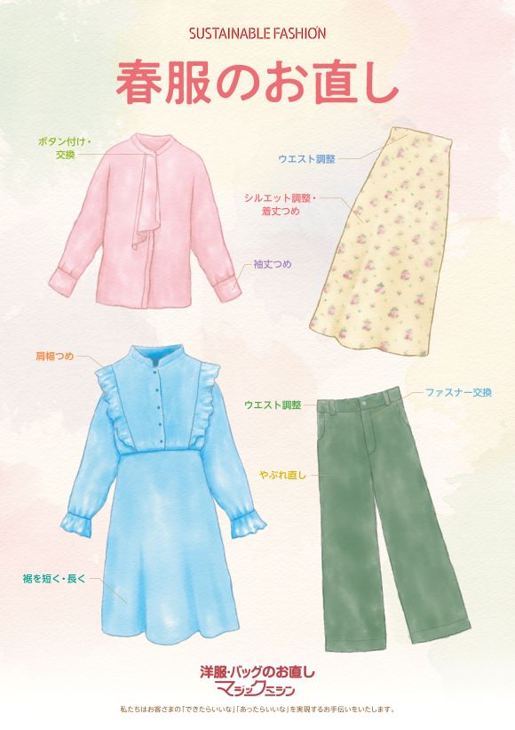 お気に入りの一着を今年の春も素敵に着こなせるよう シャツ・ブラウス・ワンピースなどの春服を お直ししましょう🌸