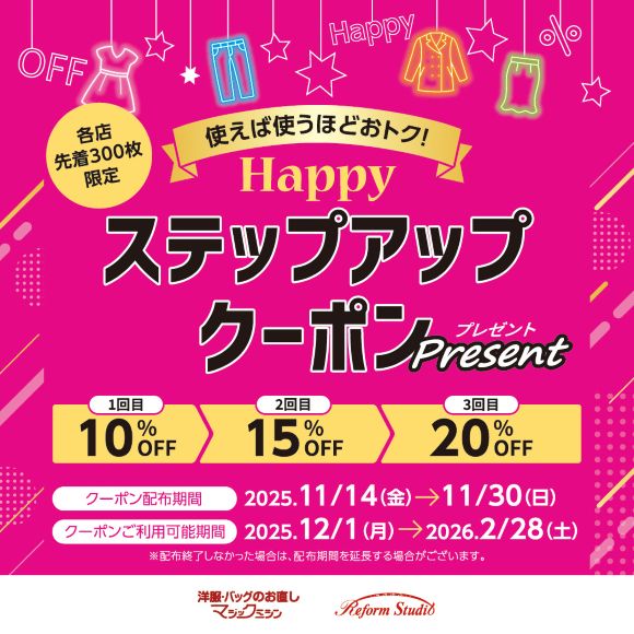 📢【予告】次回使える! ハッピーステップアップクーポンプレゼント!